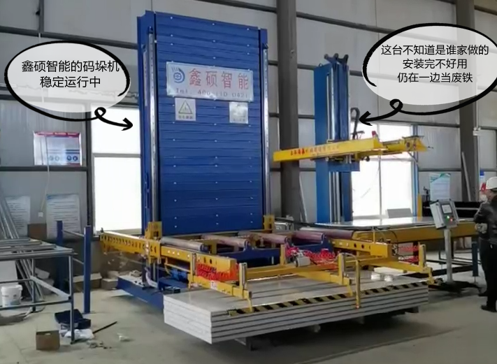 在客戶的印象里,鑫碩智能的產(chǎn)品第一印象就是貴,但是貴有貴的道理,凡是用過鑫碩智能設(shè)備的客戶,沒有說過設(shè)備不好的。一方面是對設(shè)備的品質(zhì)認(rèn)可,另一方面是對鑫碩智能的服務(wù)認(rèn)可。所以買東西不能總盯著價(jià)格,最重要的是看品質(zhì)。鑫碩智能夾芯板碼垛機(jī),用過絕不會后悔